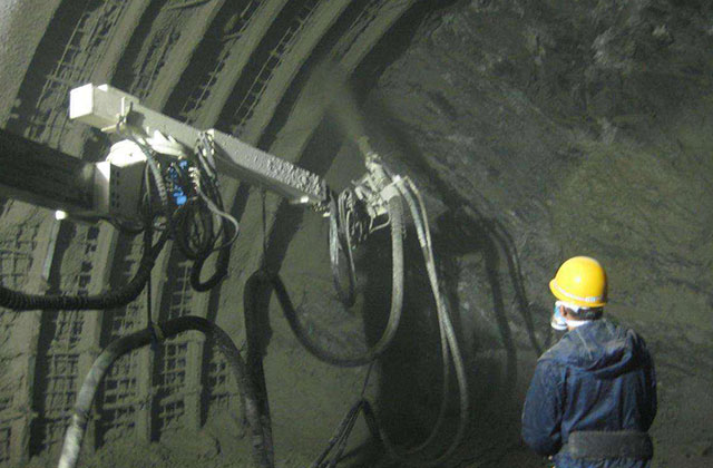 在鐵路公路隧道、深基坑和道路邊坡防護等工程施工中,廣泛采用噴射混凝土的支護方法。傳統的人工噴射混凝土法,勞動強度高、效率低、粉塵大,也存在噴射計量不均、噴射速度不快、噴射成形不穩等問題,影響施工速度和施工質量。